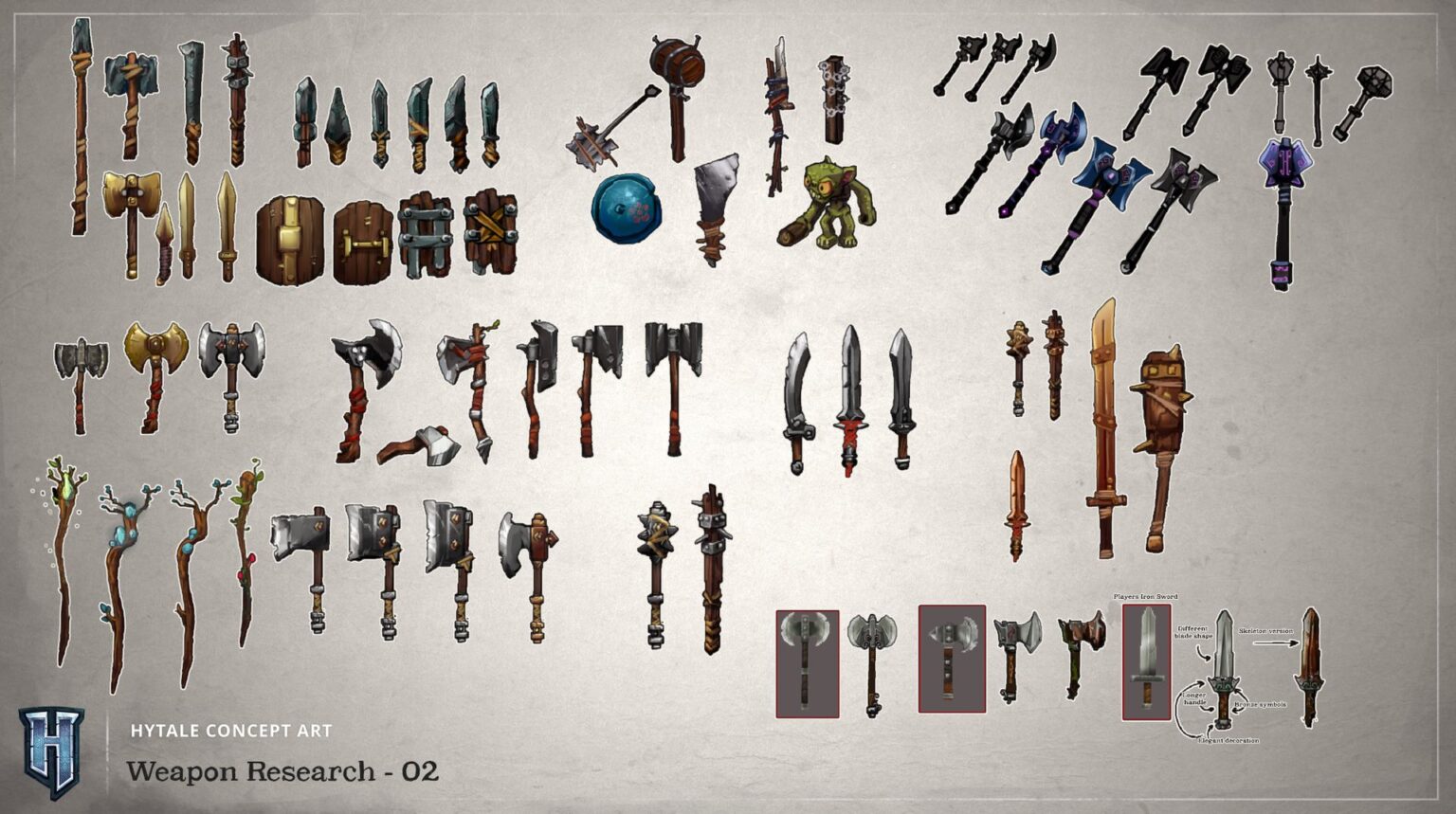Le plus intéressent se trouve sur le bas de l’image. Les armes semblent avoir plusieurs formes. Ainsi il n’y aurait pas qu’une épée en fer mais 7 au total ! Il est envisageable que chaque type d’arme soir approprié à différents tâches, ou différents monstres.