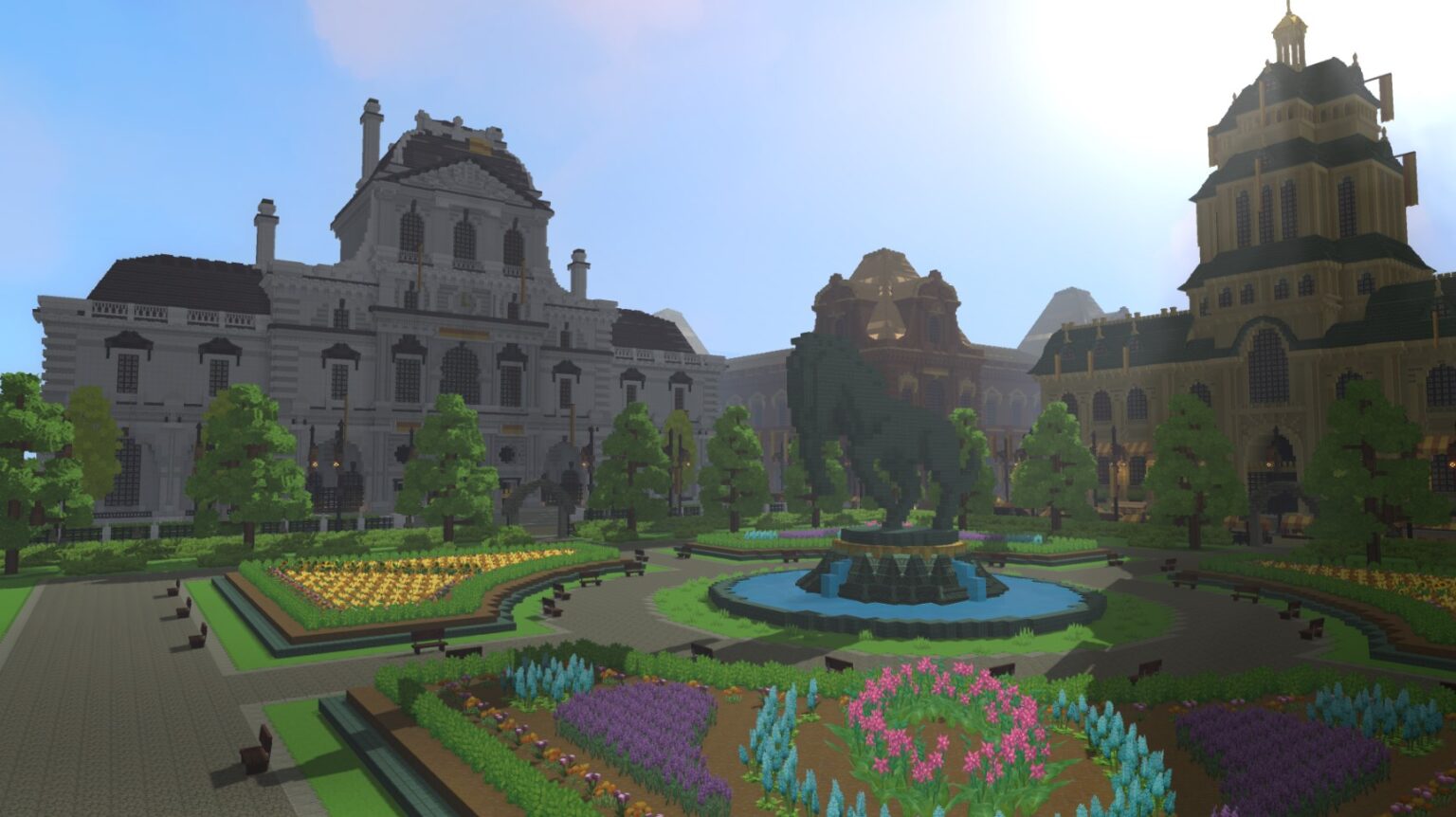 Veuillez noter que bien que certaines des constructions ci-dessous aient été construites dans les zones et les biomes du mode aventure, ce sont toutes des créations personnalisées faites à l’aide des outils de création de Hytale et ne représentent pas le contenu du mode aventure.
