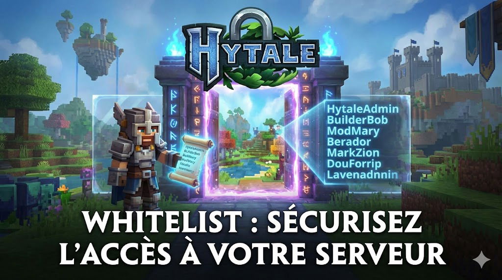 Hytale intègre des commandes spécifiques pour manipuler la whitelist directement depuis la console de votre serveur ou en tant qu’opérateur en jeu. Ces commandes vous permettent d’ajouter ou de retirer des joueurs de votre whitelist rapidement et efficacement.